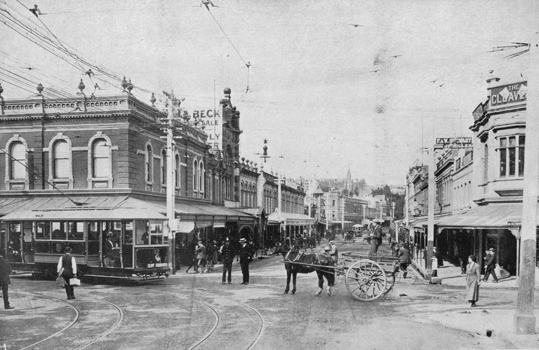 Keywords: tasmania tram street horse buggy blackandwhite monochrome road outdoor snow architecture building black and white Launceston. Spurling photo Launceston. Spurling photo