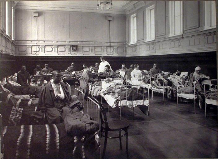 View Original:1914. 04.Раненые в палате лазарета, устроенного в помещении 1-го Женского клуба.jpg (2380x1732)