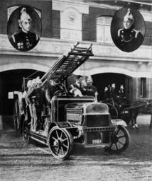 Keywords: tasmania blackandwhite monochrome vehicle bike motorcycle car black and white Hobart Fire Brigades Leyland outside Hobart Fire Station. Beattie photo Hobart Fire Brigades Leyland outside Hobart Fire Station. Beattie photo
