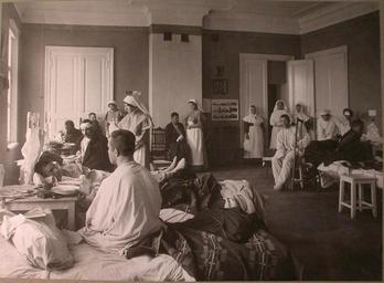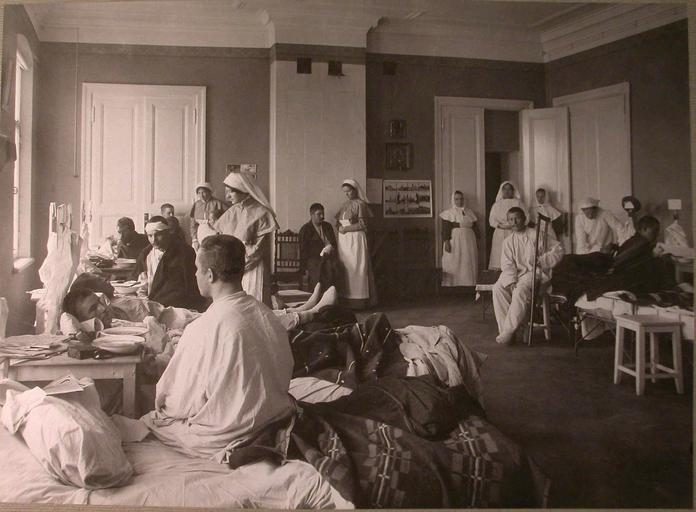 View Original:1914. 12. Сестры милосердия и раненые в палате лазарета Киевского полка.jpg (2268x1668)