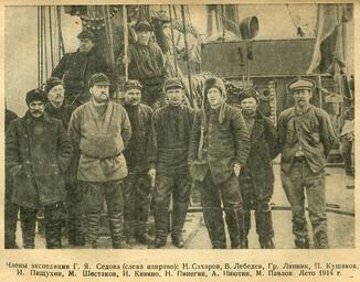 | Keywords: 1914. Члены экспедиции Седова.jpg  Члены экспедиции Седова http //www polarpost ru/forum/download/file php id 13640 mode view Фотог афии из книги  Пинегина Гео гий Седов издательство Главсевмо пути 1953 год 1914 not specified PD-RusEmpire Georgiy Sedov's expeditions photos on board of Saint Foka Nikolay Pinegin Michail Pavlov 1914 in the Russian Empire |