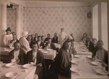 View Original:1914. 23. Раненые в столовой лазарета, устроенного Московским и Ярославско-Костромским земельным банком.jpg (2284x1660)