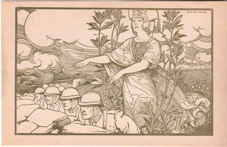 | Keywords: 1916-Ai-fratelli-della-trincea.jpg it Cartolina di propaganda - Dal fronte interno ai fratelli della trincea - edita dalla Rivista Italiana dei Giovani JUVENTUS - FIRENZE - autore Ezio Anichini Collezione cartoline Albertomos scanned byAlbertomos 1916 Soldato della Trincea Lo senti il palpito nostro che vibra col tuo Lo sai che cogli occhi del cuore ti seguiamo senza riposo mentre tu ora per ora combatti e fremi per riafferrare la santa terra che il barbaro insozza World War I postcards of Italy 1916 in Italy |