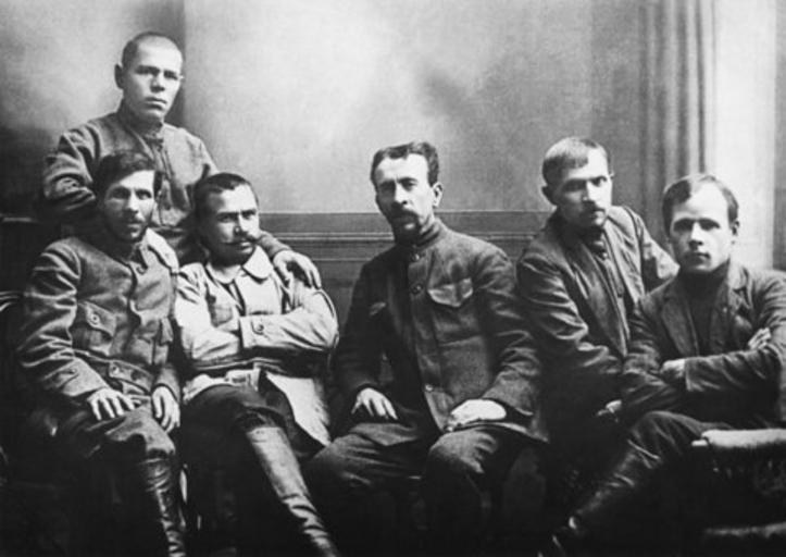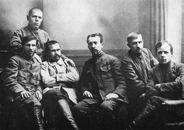 Keywords: 1918 perm bolsheviks myasnikov.jpg ru Пе мские большевики после убийства великого князя Сидят слева нап аво В Жужгов Г И ясников В А Иванченко И Ф Колпащиков В А Д окин; стоит сзади А В а ков 1918 de Bolschewiki aus Perm nach der Ermordung des Großfürsten Alexander Romanow Sitzend von links nach rechts N V Schuschgow G I Mjasnikow W A Ivantschenko I F Kolpaschtschikow W A Drokin; stehend A W Markov 1918 http //grigoryants ru/podvodya-itogi/zhitiya-vozhdej/ author 1918 PD-old Gavril Myasnikov