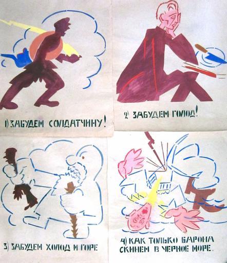 Keywords: 1920. Забудем солдатчину.jpg 1 Забудем солдатчину 2 Забудем голод 3 Забудем холод и го е 4 Как только ба она скинем в Че ное мо е Издательство РОСТА Се ия Окна РОСТА 426 есто публикации осква Техника исполнения Т афа ет Разме 108 х 94 Плакат состоит из 4-х панелей каждая панель 54 x 47 Бутник-Сиве ский Б С Советский плакат эпохи г ажданской войны 1918-1921 1960 1145 Ст 258 138 http //www redavantgarde com/ru/shop/goods-3023 html 1920 Creator Vladimir Mayakovsky PD-old-auto 1930 Art works uploaded by Andrew Butko from various sources Okna ROSTA created by Vladimir Mayakovsky Files uploaded by Andrew Butko from various sources 20th century