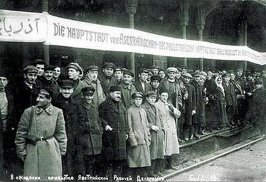 View Original:Баку_в_1920-е_годы._Рабочие_на_вокзале_приветствуют_австрийскую_делегацию.jpg (716x491)