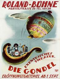 Keywords: 1923 Paul Leni zugeschrieben, Plakat Roland-Bühne, Praterstraße 25, Exentrisches Theater, Die Gondel, Eröffnungsgastspiel, Druckerei Emanuel Kafunek, Wien.jpg Vielfarbdruck-Plakat in den Maßen 126 x 95 cm gedruckt von der Druckerei Emanuel Kafunek Wien nach einem dem Künstler Paul Leni zugeschriebenen Entwurf für die Zitat Roland-Bühne // Praterstrasse 25 Tel 49129 // Exentrisches // Theater // Die Gondel // Eröffnungsgastspiel ab 1 Sept Abgebildet ist ein schwarzes Musikertrio in einer Gondel die von einem Heißluftballon in die Lüfte getragen wird http //www plakatkontor de/ivpda-poster-show/leni-p-die-gondel---exzentrisches-theater-1923 html 1923 Paul Leni PD-old DEFAULTSORT 1923 gondola Balloon aircraft in art Balloon gondolas 1923 Emanuel Kafunek 1923 posters Rolandbühne Wien Paul Leni 1923 works in Austria Praterstraße 25 |
