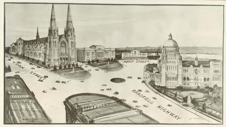 MAKE A MEME View Large Image Many other photos in our collection are available to view and browse on our website using Photo Investigator. Sketch of the intersection of Bradfield Highway with Kent, Clarence and York Streets (from the Sydney Harbour Bridge albums) ...