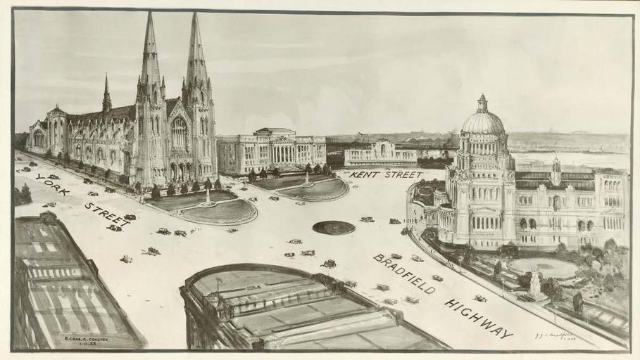 View Original:1923_Sketch_showing_Bradfield_Hwy_and_Kent,_Clarence_&_York_Streets.jpg (1200x676)