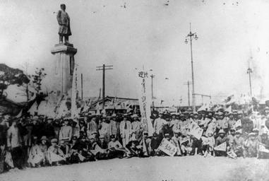 Keywords: 1924 臺灣議會請願團在東京 Taiwanese Petition Group for Democratically-Elected Assembly in Tokyo 1.jpg zh 為1924年台灣議 請願 抵達 京時,與前來歡迎的台灣留學生合影 <br>http //nrch cca gov tw/ccahome/search/search_meta jsp xml_id 0002294421 dofile getImage jsp d 1320770960951 id 0002298038 filename cca1100038-hp-tcc0197605-0001-i jpg<br> 二四年六 廿 日,第五回台灣議 設置請願代表抵達 京車站,二百餘名台灣 年 員手持寫 尊重民意 自由平等 民族自決 的小旗子,高唱 議 設置請願歌 歡迎代表 ,並搭乘 部汽車遊行市 Siòng-phìnn sī it kiú jī sù nî Tâi-uân Gī-huē tshíng-guān-thuân kàu Tang-kiann ê sî-tsūn in kah lâi gîng-tsiap ê Tâi-uân liû-ha̍k-sing tsò-hué hip-siōng 相片是1924年臺灣議 請願 到 京的時陣, 佮來迎接的臺灣留學生做伙翕相 2011-06-01 http //taiwanpedia culture tw/web/content ID 3733 台灣史100件大事 ,玉山社,1999年 林政光 PD-Japan-oldphoto Demonstrations and protests in Japan in 1924 Uploaded with UploadWizard Taiwan Parliament Petition League Movement |