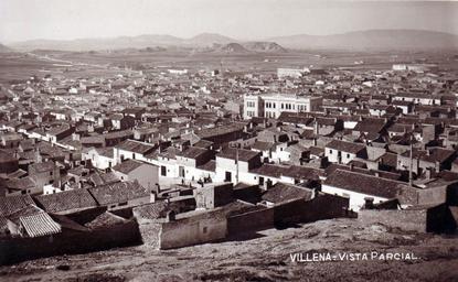 | Keywords: 1925. Vista parcial (barrio las Cruces hacia Yecla).jpg Vista parcial de Villena en primer plano el barrio de las Cruces; bajo destaca el colegio Joaquín María López las escuelas nuevas En el límite noroeste destacan el colegio Salesiano y la plaza de Toros y al fondo se alzan los Cabezos y la Sierra Alhácera Fotografía 1925 author 38 38 0 77 N 0 51 31 05 W scale 3125 Historical images of Villena PD-old | ||||
