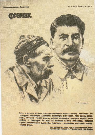 | Keywords: Огонек 1934.JPG Ogoniok Magazine 1934 Iosif Stalin and Maxim Gorky Обложка жу нала «Огонек» 1934 года от 20 августа Сталин и Го ький в тюбетейке Вы писатели - инжене ы ст оящие человеческие души И Сталин own photo 1934-08-20 Ogoniok В пе воисточнике не указан неизвестен PD-old-70 Ogoniok 1934 Joseph Stalin Maxim Gorky Tubeteikas |