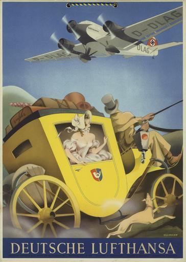 Keywords: 1936 circa Max Ullmann Plakat für die Deutsche Lufthansa, Junkers Ju 52 über einer Postkutsche.jpg 1936 entstandenes Vielfarb-Plakat Druckvermerk Werbung 20d/I 37 BTL für die Deutsche Lufthansa nach einem Entwurf von Max Ullmann Ein dreimotoriges Flugzeug Typ Junkers Ju 52 Spitzname žTante Ju hier zur Zeit des Nationalsozialismis mit Hakenkreuz fliegt über einer altmodischen Postkutsche in voller Fahrt aus der sich eine offenherzige Dame bewundernd herausbeugt den Blick erfreut nach oben gerichtet http //www plakatkontor de/ivpda-poster-show/ullmann-m-deutsche-lufthansa---junkers-ju-52 html 1936 Max Ullmann PD-old Junkers Ju 52 1936 posters 1936 works in Germany Max Ullmann Verleger 1936 in aviation in Germany Lufthansa Stagecoaches in art Swastikas in advertising Aviation advertising posters |