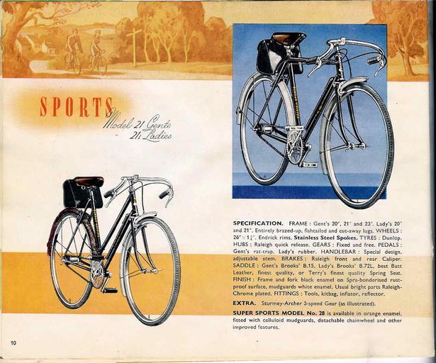 | Keywords: 1950 raleigh bicycle bike vintage vehicle england humber writing text drawing sketch I haven't been able to find a 1950 Humber catalogue, but the Raleigh and Humber Sports models of the period had identical specifications right down to the colour. Thus, my Humber likely left the factory in 1950 in identical form to the bicycle illustrated here. I haven't been able to find a 1950 Humber catalogue, but the Raleigh and Humber Sports models of the period had identical specifications right down to the colour. Thus, my Humber likely left the factory in 1950 in identical form to the bicycle illustrated here. |
