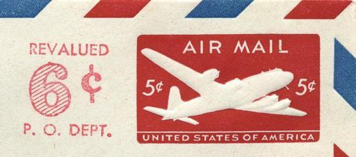 | Keywords: 1950 US Airmail Stamped Envelope Indicium - 6 cents.jpg en 1950 revaluation from 5 to 6 cents denomination - U S airmail stamped envelope indicium 1950 U S Post Office Department scan of stamped envelope owned by contributor U S Post Office Department PD-USGov Uploaded with UploadWizard Cut squares of the United States |