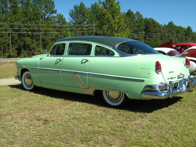 | Keywords: 1954 Hudson Hornet Twin H sedan green lr.jpg en 1954 Hudson Hornet Special A four-door Step-Down sedan finished in two-tone paint light green with darker green roof This car has the Twin-H-Power 308 cu in 5 0 L straight-six engine producing 170 hp 127 kW Picture taken at a local car show in North Carolina own 2010-10-09 CZmarlin ” Christopher Ziemnowicz releases all rights but a photo credit would be appreciated if this image is used anywhere other than Wikipedia Please leave a note at Wikipedia http //en wikipedia org/w/index php title User_talk CZmarlin action edit section new here Thank you en I the copyright holder of this work hereby release it into the public domain This applies worldwide Hudson trunk emblem <br> Hudson Hornet fender emblem <br> Hudson rocket trunk lid emblem <br> Hudson Twin H emblem on trunk <br> Hudson C-pillar detail <br> Hudson front door detail <br> Hudson front door detail <br> Hudson Twin H engine detail <br> Hudson Twin H engine detail <br> Hudson Twin H engine detail <br> Hudson Twin H engine detail <br> Hudson front end detail <br> Hudson hood scoop detail <br> Hudson interior detail <br> Hudson interior detail <br> Hudson interior detail <br> Hudson interior detail <br> Hudson interior detail <br> Hudson interior detail <br> Hudson left rear <br> Hudson left side <br> Hudson left rear <br> Hudson right front hood open <br> Hudson right front hood closed <br> Hudson right rear trunk open <br> Hudson right rear trunk closed <br> Hudson taillamp tailfin detail <br> Hudson front view head on <br> Hudson rear view tail end <br> 1954 Hudson automobiles Hudson Hornet Green sedans Automobiles facing left |