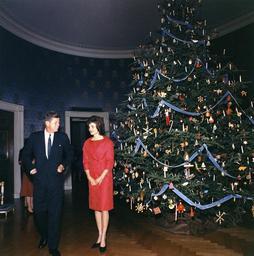 | Keywords: 1962 White House Christmas Tree - John and Jacqueline Kennedy 1.jpg en First Lady Jacqueline Kennedy introduced the tradition of Christmas Tree themes in 1961 with a Nutcracker Suite theme featuring trimmings derived from the ballet by Tchaikovsky Ornaments included gingerbread cookies tiny toys wrapped packages candy canes and straw ornaments made by disabled or senior citizen craftsmen throughout the United States Pictured 1962 Blue Room Christmas Tree President John F Kennedy First Lady Jacqueline Kennedy http //georgewbush-whitehouse archives gov/holiday/2002/whtree/06 html The White House http //www jfklibrary org/Asset+Tree/Asset+Viewers/Image+Asset+Viewer htm guid 32B568FF-2649-4BEC-874F-BB6DAFE92E42 type Image Kennedy Library Robert Knudsen White House Collection 1962-12-13 Public domain see license thumb none White House Christmas Tree 13 December 1961 jpg PD-USGov-POTUS PD-USGov Christmas 1961 in the United States Blue Room Christmas tree John F Kennedy in 1961 John and Jacqueline Kennedy Photographs by Robert L Knudsen Candy canes 13 December White House in 1961 People of the United States in 1961 December 1961 in the United States |