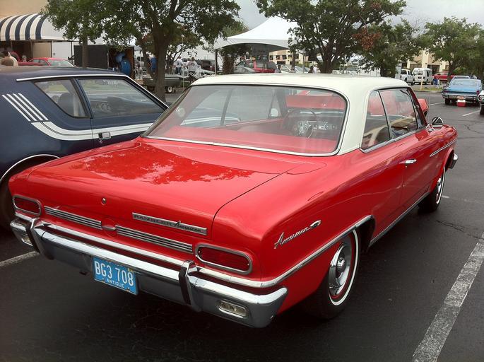 | Keywords: 1964 Rambler American 440-H hardtop 2014-AMO-NC-b.jpg en 1964 Rambler American 440-H a sporty two-door hardtop no B-pillar manufactured by American Motors Corporation AMC and finished in red with a white roof This was the top of the line model with standard bucket seats and this model features AMC's innovative Twin-Stick center console mounted manual transmission Photographed at the 2014 American Motors Owners AMO convention that was held in North Charleston North Carolina USA 2014-08-01 18 16 53 own CZmarlin ” Christopher Ziemnowicz releases all rights but a photo credit would be appreciated if this image is used anywhere other than Wikipedia Please leave a note at Wikipedia http //en wikipedia org/w/index php title User_talk CZmarlin action edit section new here Thank you thumb left thumb center thumb left 32 871833333333 -80 009 cc-zero Rambler American third generation 1964 AMC automobiles Uploaded with UploadWizard Red coupes |