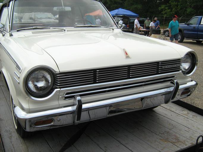 | Keywords: 1965 Rambler American 440 convertible white mdD-4.jpg en Front end and grill design of the 1965 Rambler American - a compact car produced by American Motors Corporation AMC It has the factory optional bumper guards This white two-door convertible is the 440 model and features AMC's entirely new 232 cu in 3 8 L straight-6 engine that AMC would use through 1979 and then continue being built through 2006 in different displacements including the 4 0 L Jeep engine under AMC and later Chrysler Photograph taken in the vendor's area at Potomac Ramblers Club's 2011 all AMC Drag Race Day held at the Capitol Raceway located in Crofton Maryland own 2011-06-11 CZmarlin ” Christopher Ziemnowicz releases all rights but a photo credit would be appreciated if this image is used anywhere other than Wikipedia Please leave a note at Wikipedia http //en wikipedia org/w/index php title User_talk CZmarlin action edit section new here Thank you thumb left Front right side view thumb center Rear right view thumb left Driver's cockpit dashboard individually adjustable reclining seats thumb center Rear view thumb left The Rambler American badge on trunk lid thumb center The American 440 badge on rear fender Rambler American third generation Automobile grills 1965 AMC automobiles |