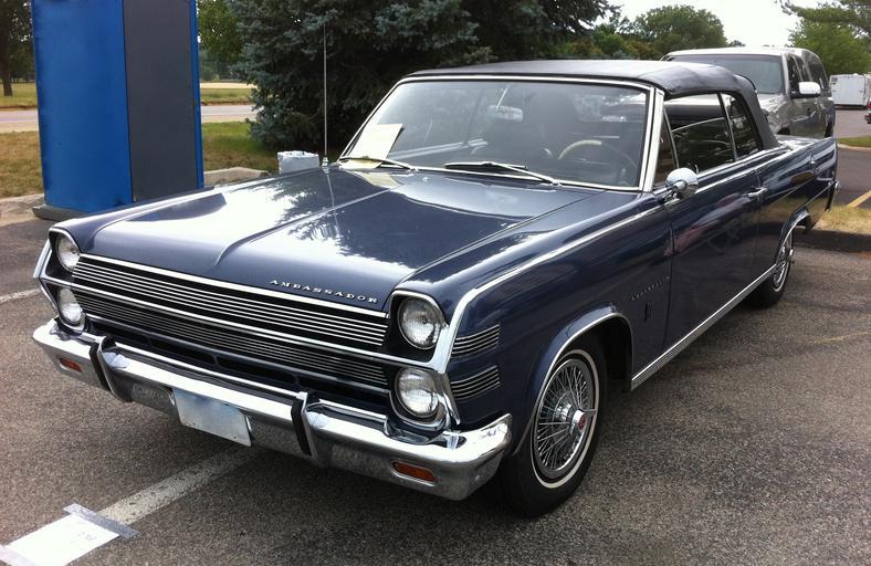 | Keywords: 1966 AMC Ambassador 990 4-sp convertible AACA Iowa b.jpg 42 028833333333 -91 651833333333 en 1966 AMC Ambassador 990 convertible finished in blue - front left side view A full-sized automobile built by American Motors Corporation AMC in Kenosha Wisconsin This is an all original one-owner car that was special ordered by them Among the features on this car are its 327 cu in 5 4 L 4--barrel carb V8 engine with a 4-speed manual transmission center console mounted shifter with black bucket seats as well as an AM/FM radio and an aftermarket 8-track stereo player Picture taken at the 2012 Antique Automobile Club of America AACA Central Spring meet in Cedar Rapids Iowa USA 2012-06-23 14 31 37 own CZmarlin ” Christopher Ziemnowicz releases all rights but a photo credit would be appreciated if this image is used anywhere other than Wikipedia Please leave a note at Wikipedia http //en wikipedia org/w/index php title User_talk CZmarlin action edit section new here Thank you thumb left Right side front view thumb center Right rear view thumb left Rear view thumb center Right side view thumb left Front view thumb center Interior view thumb left Driver's compartment thumb center Interior view thumb left Left side of engine thumb center Right side of engine thumb left Front view thumb center Headlamp detail thumb left Model name and wheel detail thumb center Right front view thumb left upright Tail lamp detail cc-zero AMC Ambassador Uploaded with UploadWizard Blue convertibles 1966 AMC automobiles Automobiles facing left |
