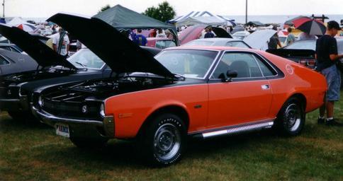 | Keywords: 1970 AMX BBO-exteriorF.JPG 1970 AMC American Motors Corporation AMX sports coupe finished in Big Bad Orange BBO with the black shadow mask option Factory 390 6 4 L Go Package This car also has the optional 15-inch Machine wheels and side-pipe exhaust system own CZmarlin ” Christopher Ziemnowicz releases all rights but a photo credit would be nice if this image is used anywhere other than Wikipedia Uploaded on 2008-09-06 Picture of this car from the rear <br> Interior view of this car AMC AMX 1970 AMC automobiles Orange coupes |