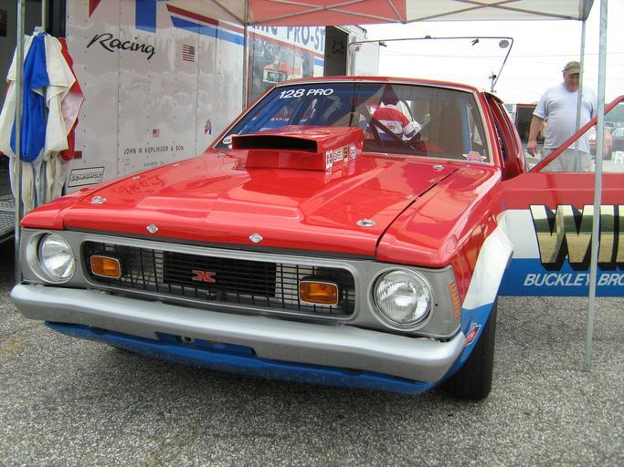 | Keywords: 1972 AMC Gremlin veteran dragster 99 WIBG mdD-fr.jpg  en Front view of the customized 1972 AMC Gremlin a historic professional dragster that was driven by Rich LaMont and sponsored by radio station 99 WIBG broadcasting in Philadelphia PA This car RUNS the quarter-mile at around 8 75 seconds achieving over 150 mph 240 kph This Pro-Stock racer is restored period correct and raced regularly Photograph taken at Potomac Ramblers automobile club's 2011 All AMC Drag Race Day held at the Capitol Raceway a NHRA sanctioned 1/4 mile asphalt and concrete drag strip located in Crofton Maryland own 2011-06-11 CZmarlin ” Christopher Ziemnowicz releases all rights but a photo credit would be appreciated if this image is used anywhere other than Wikipedia Please leave a note at Wikipedia http //en wikipedia org/w/index php title User_talk CZmarlin action edit section new here Thank you en I the copyright holder of this work hereby release it into the public domain This applies worldwide thumb left Side rear view with open driver's door thumb center Race driver's cockpit and controls thumb left The Pro-Stock Gremlin and several other AMCs waiting for their turn thumb center The Gremlin doing a burnout thumb left At the starting line for the race the 99 WIBG Gremlin in lane 1 and and a two-seat AMX in lane 2 thumb center Returning from a run down the drag strip thumb left Approaching the timing booth thumb center Rear right side view thumb left The 1972 AMC Pro Stock Gremlin's trailer AMC Gremlin AMC Custom cars AMC dragsters Front views of AMC automobiles |