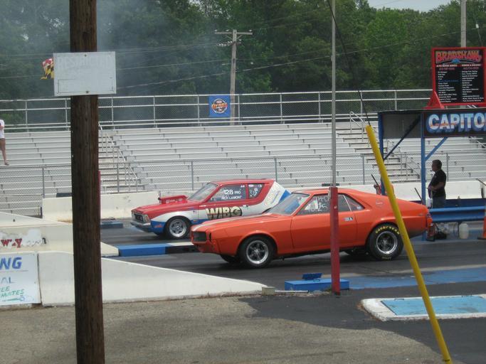 | Keywords: 1972 AMC Gremlin veteran dragster 99 WIBG mdD-ls.jpg en At the starting line for the race the radio 99 WIBG Pro-Stock AMC Gremlin in lane 1 and and a two-seat 1969 AMC AMX finished in Big Bad Orange in lane 2 This customized 1972 AMC Gremlin is a historic professional dragster that was driven by Rich LaMont and sponsored by radio station 99 WIBG broadcasting in Philadelphia PA This car RUNS the quarter-mile at around 8 75 seconds achieving over 150 mph 240 kph This Pro-Stock racer is restored period correct and raced regularly Photograph taken at Potomac Ramblers automobile club's 2011 All AMC Drag Race Day held at the Capitol Raceway a NHRA sanctioned 1/4 mile asphalt and concrete drag strip located in Crofton Maryland own 2011-06-11 CZmarlin ” Christopher Ziemnowicz releases all rights but a photo credit would be appreciated if this image is used anywhere other than Wikipedia Please leave a note at Wikipedia http //en wikipedia org/w/index php title User_talk CZmarlin action edit section new here Thank you en I the copyright holder of this work hereby release it into the public domain This applies worldwide thumb left Side rear view with open driver's door thumb center Front view of the customized 1972 AMC Gremlin thumb left Race driver's cockpit and controls thumb center Waiting in lanes with other all AMC automobiles thumb left The Radio 99 WIBG Pro-Stock Gremlin doing a burnout at the drag strip thumb center Returning from a run down the drag strip thumb left Approaching the timing booth thumb center Rear right side view thumb left The 1972 AMC Pro Stock trailer AMC AMX AMC Gremlin AMC dragsters Drag strips |