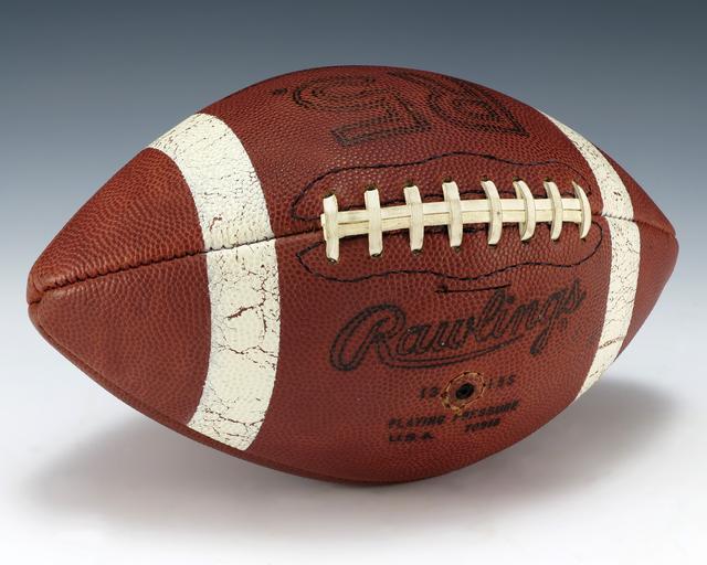 | Keywords: 1978 Rose Bowl Football (1983.317).jpg en A football from the 1978 Rose Bowl where the Washington Huskies led by Warren Moon thwarted a furious second half comeback of the Michigan Wolverines led by Rick Leach The Huskies defeated the Wolverines 27-20 Stamped on the ball is text that reads 1978 Rose Bowl / Washington / vs / Michigan President Ford served as the Grand Marshal of the Tournament of Roses parade leather 11 x 6 in 27 9 x 15 2 cm Institution Gerald R Ford Presidential Museum http //www fordlibrarymuseum gov/museum/ArtifactCollectionSamples/Catagories/Presidential 20Footballs/1983 317 html 1978 Rose Bowl Football accession number 1983 317 credit line Courtesy of the Gerald R Ford Presidential Museum Donor Unknown Institution Institution Gerald R Ford Presidential Museum PD-USGov Uploaded with UploadWizard Media contributed by the Gerald R Ford Presidential Library and Museum Footballs in the collection of the Gerald R Ford Presidential Museum American football balls Rose Bowl Game 1978 in sports in the United States Washington Huskies football Michigan Wolverines football |