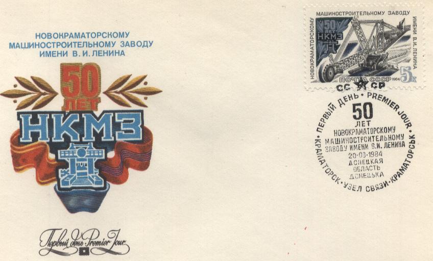 Keywords: 1984. 50 лет НКМЗ. Марка и КПД.jpg 50 лет К З а ка и КПД 1984 https //fotki yandex ru/users/stepuraanton71/album/532664 почта СССР PD-RU-exempt 1984 50 лет К З а ка и спецгашение jpg Kramatorsk Stamps of the Soviet Union 1984