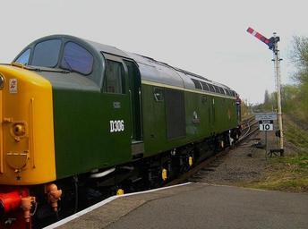 Keywords: 19TH April D306 x Orton Mere.JPG Preserved British Railways Class 40 D306 'Atlantic Conveyor' at Orton Mere on the Nene Valley Railway during the 40TH Anniversary of the Class 40s Gala Weekend Own 2008-04-19 Peter Skuce British Rail Class 40 D306 TOPS 40106 Orton Mere railway station |