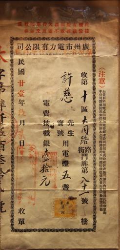 Keywords: 廣州市電力有限公司電費收條1.jpg zh 廣州市電力 限公司電費單 2012-09-22 16 52 24 廣州近代史博物館 author Custom license marker 2012 09 23 PD-old Uploaded with UploadWizard Collections of Guangzhou Modern History Museum Historical images of Guangzhou