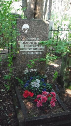 | Keywords: ФёдоровК.К.1уч.JPG ru Фёдо ов Константин Константинович 24 08 1899 Сест о ецк 16 03 1990 Сест о ецк из семьи абочих Сест о ецкого о ужейного завода жившей в Гага инском пе еулке дом 11 пе еулок не сох анился сейчас на этом месте 435 школа и 13 детсад Закончил емесленное училище п и заводе и стал т удиться в об азцовой масте ской увлёкся еволюцией под воздействием большевистских п опагандистов Участвовал в подавлении К онштадского мятежа в составе выпускников Вологодских пехотных командных ку сов затем учёба в Ха ьковском пехотном училище и а тилле ийские ку сы п и 23-й Ха ьковской ст елковой дивизии Бои с бандами ахно и а уси во главе оты 429 отдельного батальона Пете гофские танковые ку сы высшее военное об азование танкиста и шиф овальщика Знал много но ничего никому не ассказывал по п инципу « е болтай» Отставной полковник шиф овальщик Генштаба из-за тяжёлого анения п авой уки с 50-х годов жил в одном доме и занимался соби ательством азличных едких видов деко ативных астений и цветов По случаю его коллекция обогатилась едчайшими со тами астений в том числе тюльпанов выведенных в Ташкентском ботаническом саду Это было научное сот удничество бывшего военного и учёных Ташкента по ап обации южных со тов в севе ных егионах ст аны В 1977 году в связи с заст ойкой многоква ти ными домами с семьёй пе еехал в однокомнатную ква ти у на пл Свободы Сест о ецка Участник Г ажданской Финской ВОВ войн на Дальнем Востоке наг аждённый многими о денами СССР и Польши Фёдо ов К К похо онен не далеко от могилы осина С И на Сест о ецком кладбище Рядом покоятся две его жены Екате ина Тимофеевна и Любовь Г иго ьевна вок уг астут п ивезённые из Ташкента туи ист Ку о тный айон Ст аницы исто ии Вып 5 СПб 2010 с 70-77ISBN 978-904160-23-2 own Пёт Иванов 2016 Sestroretsk cemetery Cc-zero |