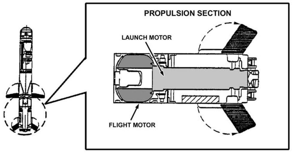 | Keywords: 1-24 Missile propulsion section.PNG en FGM-148 Missile propulsion system 2-stage de FGM-148 Zweistufen-Feststoffantrieb U S Army FM 3-22 37 JAVELIN MEDIUM ANTIARMOR WEAPON SYSTEM HEADQUARTERS DEPARTMENT OF THE ARMY Washington DC 23 January 2003 2003-01-23 PD-USGov FGM-148 Javelin |
