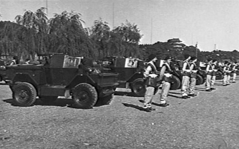 | Keywords: 1 AC Sqn (AWM 145207).jpg C Squadron 1st Australian Armoured Car Regiment stand in front of their vehicles ready for inspection by the BCOF Commander-in-Chief Lieutenant General H C H Robertson CBE DSO Transferred from http //en wikipedia org en wikipedia; transferred to Commons by User Lcawte using http //tools wikimedia de/~magnus/commonshelper php CommonsHelper <br/> Original text http //cas awm gov au/TST2/cst acct_master surl 939359271ZZZVEFNWNTFKR02381 stype 3 simplesearch v_umo v_product_id screen_name screen_parms screen_type RIGHT bvers 5 bplatform Netscape bos Win32 Australian War Memorial image 145207 1947 11 21 <br/> 2006 04 07 first version ; 2007 12 23 last version author Original uploader was Nick-D at http //en wikipedia org en wikipedia Later version s were uploaded by Avala SCEhardt at http //en wikipedia org en wikipedia PD-AUSTRALIA; PD-RETOUCHED-USER <br/> Original text Australian copyright expired 1997-12-31<br/>Still under U S copyright 145207 PD-Australia SCEhardt August 2006 original upload log page en wikipedia 1_AC_Sqn_ 28AWM_145207 29 jpg 2007-12-23 23 26 Avala 450×280× 98376 bytes <nowiki></nowiki> 2006-08-09 18 10 SCEhardt 450×287× 50799 bytes <nowiki>cropped</nowiki> 2006-04-07 23 52 Nick-D 450×338× 67910 bytes <nowiki>Australian War Memorial AWM catalog number 145207 Sourced from http //www awm gov au/database/collection asp Copyright The AWM record for this photo states that the copyright status is 'clear' The photo was taken in 1947 The AWM allow</nowiki> Daimler Scout Car Australian Army Military units and formations of Australia Military units and formations established in 1946 Black and white photographs of Australia Black and white photographs of war |
