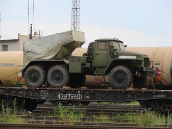 Keywords: 1 multiple rocket launcher BM-21 Grad.JPG en Russia transporting multiple rocket launcher BM-21 Grad by railroad ru Россия пе евозка РСЗО «Г ад» по железной до оге own Sergeev Pavel 2010 BM-21 Grad on a Ural-375D chassis Flat railway wagons of Russia Transport of military vehicles by rail |