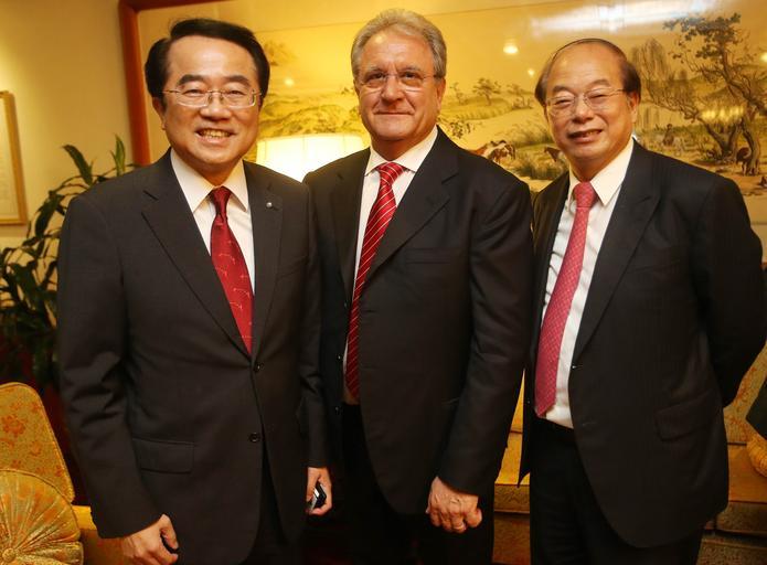 View Original:亞協李會長(左1)應邀出席「中華職棒WPBL吳會長志揚歡迎日本職棒NPB熊崎勝彥會長」晚宴,暢談臺日職棒交流並與國際棒總Fraccari會長(中)及圓山飯店李董事長建榮合影留念。.jpg (4398x3238)