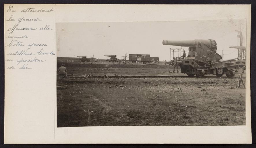 | Keywords: the great war thegreatwar great war greatwar world war one worldwarone world war i worldwari wwi first world war firstworldwar grande guerre grandeguerre 1gm première guerre mondiale premièreguerremondiale artillerie artillery photo border outdoor text En attendant la grande offensive allemande. Notre grosse artillerie lourde en position de tir. En attendant la grande offensive allemande. Notre grosse artillerie lourde en position de tir. | ||||