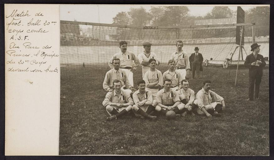 Keywords: photo border outdoor Match de football 20ème corps contre A.S.F. Au parc des princes, l'équipe du 20ème corps, devant son but. Match de football 20ème corps contre A.S.F. Au parc des princes, l'équipe du 20ème corps, devant son but.