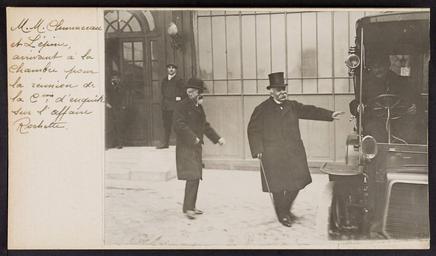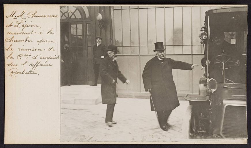 Keywords: photo border Messieurs Clemenceau et Lépine arrivant à la chambre pour la réunion de la commission d'enquête sur l'affaire Rochette. Messieurs Clemenceau et Lépine arrivant à la chambre pour la réunion de la commission d'enquête sur l'affaire Rochette.