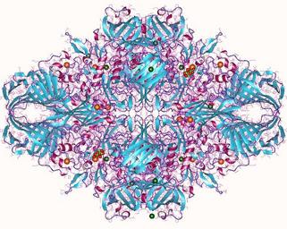 | Keywords: 1jyn.jpg E COLI lacZ BETA-GALACTOSIDASE E537Q IN COMPLEX WITH LACTOSE<br>Lactase tetramer + 4 lactose green-red + 14 Mg d green + 15 Na orange 10 2210/pdb1jyn/pdb 2016 05 16 upload to Wikimedia Commons 2001 09 13 deposition at PDB Deposition authors Juers D H Matthews B W ; visualization author User Astrojan PD-link http //www rcsb org/pdb/explore do structureId 1JYN GFDL cc-by-3 0 redundant Protein structures from PDB Beta-galactosidase | ||||