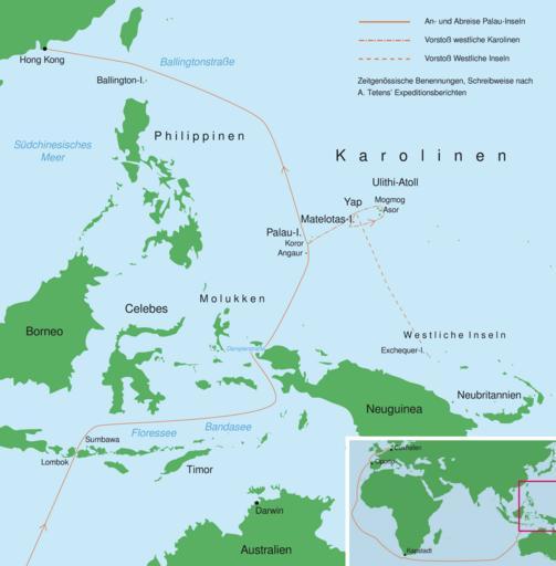 | Keywords: 1te Vesta-Expedition.png Karte zur ersten Vesta-Expedition Alfred Tetens ™ Aug 1865 “Sept 1866 zeitgenössische Benennungen Die Namen von Inselgruppen Atollen Inseln und Orten sind die im 19 Jahrhundert in Deutschland gebräuchlichen Die Schreibweise orientiert sich an Tetens' Expeditionsberichten PNG-Version zur Einbindung in Artikel Kartendaten Demis Map Server und Karte žÃ bersicht der Deutschen Besitzungen im Stillen Ozean ; Projektion unbekannt; Quelle Benennungen und Reisewege Alfred Tetens Expeditionen der Hamburger Brigg Vesta Die Berichte von Kapitän Alfred Tetens 1865 “1868 Transcript in modern German script by Jakob Anderhandt of Captain Tetens ™ reports of his expeditions to the Caroline Islands and Palau with annotations Transkript der Berichte von Alfred Tetens über seine Expeditionen zu den Karolinen und nach Palau 1865 “1868 in lateinischer Schrift angefertigt mit Anmerkungen versehen von Jakob Anderhandt Australian National University Pacific Manuscripts Bureau Canberra 2009 Mikrofilm PMB 1319; erstellt mit Adobe Illustrator CS 2 2013-07-24 Mr Südsee wikipedia de PDF-Version mit allen Bearbeitungsfunktionen Mr Südsee Original upload log de wikipedia NordNordWest CommonsHelper de wikipedia 1te+Vesta-Expedition png 2013-07-24 00 50 Mr Südsee 1772×1803× 320873 bytes <nowiki> Beschreibung Quelle Information Karte zur ersten Vesta-Expedition Alfred Tetens ™ Aug 1865 “Sept 1866 zeitgenössische Benennungen PNG-Version zur Einbindung in Artikel Kartendaten Demis Map Se ¦</nowiki> Tetens' Vesta expeditions |