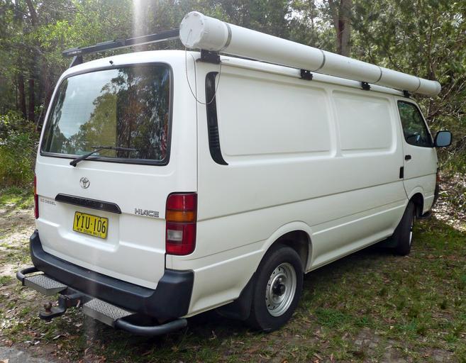 Keywords: 2000-2004 Toyota Hiace (LH172R) van 01.jpg 2000 “2004 Toyota Hiace LH172R van photographed in Audley New South Wales Australia 2009-11-17 Own OSX Released into the public domain OSX Toyota HiAce H100 White vans Photographs by OSX