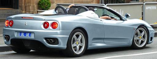| Keywords: 2000-2005 Ferrari 360 Spider convertible (2011-11-08).jpg 2000 “2005 Ferrari 360 Spider convertible photographed at The Rocks New South Wales Australia 2011-11-08 Own OSX -33 86039 151 208603 OSX Ferrari 360 Spider Blue roadsters Photographs by OSX |