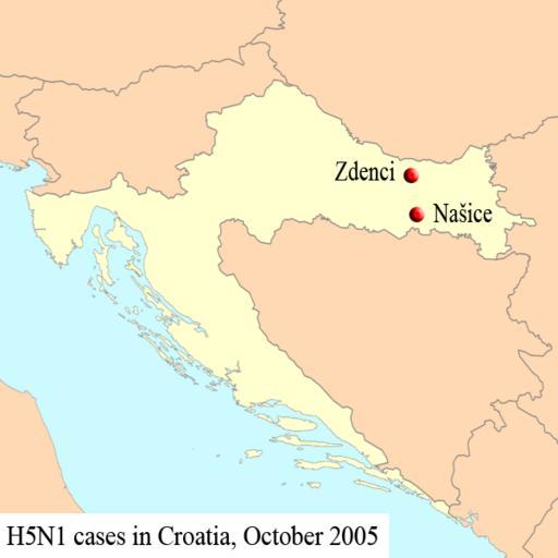 Keywords: 2005-Croatia map H5N1.png Own work 2007-02-15 own assumed Orlovic Avian influenza
