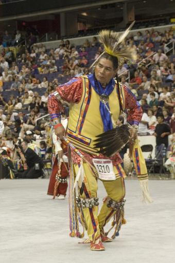 | Keywords: smithsonian institution smithsonianinstitution powwow native americans nativeamericans regalia tradition dancer feathers modern native american event modernnativeamericanevent pow wow dancer powwowdancer american indian americanindian male early 21st century early21stcentury leather customs drum sing diverssit indian native american nativeamerican dance crowd head dress headdress national museum of the american indian nationalmuseumoftheamericanindian Description: Powwows are large social gatherings of Native Americans who follow traditional dances started centuries ago by their ancestors, and which continually evolve to include contemporary aspects. These events of drum music, dancing, singing, artistry and food, are attended by Natives and non-Natives, all of whom join in the dancing and take advantage of the opportunity to see old friends and teach the traditional ways to a younger generation. During the National Powwow, the audience see dancers in full regalia compete in several dance categories, including Men and Women's Golden Age (ages 50 and older); Men's Fancy Dance, Grass and Traditional (Northern and Southern); Women's Jingle Dress, Fancy Shawl, and Traditional (Northern and Southern); Teens (13-17); Juniors (6-12) and Tiny Tots (ages 5 and younger). The drum groups are the heart of all powwows and provide the pulsating and thunderous beats that accompany a dancer's every movement. The powwow is led by three "host drums" that showcase three distinct styles of singing (Northern, Southern and contemporary) and represent the best examples of each style. The drum contest highlights groups of 10 to 12 members each, and they sing traditional family songs that are passed down orally from one generation to the next. The National Museum of the American Indian sponsored the National Powwow in 2002, 2005, and 2007 as a way of presenting to the public the diversity and social traditions of contemporary Native cultures. Creator/Photographer: R.A. Whiteside Medium: Digital photograph Culture: American Indian Geography: USA Date: 2005 Repository: National Museum of the American Indian Accession number: 081405RWPWNMAIc 096 Description: Powwows are large social gatherings of Native Americans who follow traditional dances started centuries ago by their ancestors, and which continually evolve to include contemporary aspects. These events of drum music, dancing, singing, artistry and food, are attended by Natives and non-Natives, all of whom join in the dancing and take advantage of the opportunity to see old friends and teach the traditional ways to a younger generation. During the National Powwow, the audience see dancers in full regalia compete in several dance categories, including Men and Women's Golden Age (ages 50 and older); Men's Fancy Dance, Grass and Traditional (Northern and Southern); Women's Jingle Dress, Fancy Shawl, and Traditional (Northern and Southern); Teens (13-17); Juniors (6-12) and Tiny Tots (ages 5 and younger). The drum groups are the heart of all powwows and provide the pulsating and thunderous beats that accompany a dancer's every movement. The powwow is led by three "host drums" that showcase three distinct styles of singing (Northern, Southern and contemporary) and represent the best examples of each style. The drum contest highlights groups of 10 to 12 members each, and they sing traditional family songs that are passed down orally from one generation to the next. The National Museum of the American Indian sponsored the National Powwow in 2002, 2005, and 2007 as a way of presenting to the public the diversity and social traditions of contemporary Native cultures. Creator/Photographer: R.A. Whiteside Medium: Digital photograph Culture: American Indian Geography: USA Date: 2005 Repository: National Museum of the American Indian Accession number: 081405RWPWNMAIc 096 |