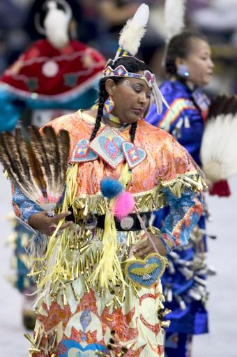 | Keywords: smithsonian institution smithsonianinstitution womensday native american nativeamerican american indian americanindian dance costume indian feathers pow wow powwow fan feather anthropology culture native americans nativeamericans american indians americanindians woman native native american dance nativeamericandance native american woman nativeamericanwoman traditional dance traditionaldance native american dress nativeamericandress colorful color national museum of the american indian nationalmuseumoftheamericanindian Description: Powwows are large social gatherings of Native Americans who follow traditional dances started centuries ago by their ancestors, and which continually evolve to include contemporary aspects. These events of drum music, dancing, singing, artistry and food, are attended by Natives and non-Natives, all of whom join in the dancing and take advantage of the opportunity to see old friends and teach the traditional ways to a younger generation. During the National Powwow, the audience see dancers in full regalia compete in several dance categories, including Men and Women's Golden Age (ages 50 and older); Men's Fancy Dance, Grass and Traditional (Northern and Southern); Women's Jingle Dress, Fancy Shawl, and Traditional (Northern and Southern); Teens (13-17); Juniors (6-12) and Tiny Tots (ages 5 and younger). The drum groups are the heart of all powwows and provide the pulsating and thunderous beats that accompany a dancer's every movement. The powwow is led by three "host drums" that showcase three distinct styles of singing (Northern, Southern and contemporary) and represent the best examples of each style. The drum contest highlights groups of 10 to 12 members each, and they sing traditional family songs that are passed down orally from one generation to the next. The National Museum of the American Indian sponsored the National Powwow in 2002, 2005, and 2007 as a way of presenting to the public the diversity and social traditions of contemporary Native cultures. Creator/Photographer: Katherine Fogden Medium: Digital photograph Culture: American Indian Geography: USA Date: 2005 Repository: National Museum of the American Indian Accession number: 081305KFPWd197 Description: Powwows are large social gatherings of Native Americans who follow traditional dances started centuries ago by their ancestors, and which continually evolve to include contemporary aspects. These events of drum music, dancing, singing, artistry and food, are attended by Natives and non-Natives, all of whom join in the dancing and take advantage of the opportunity to see old friends and teach the traditional ways to a younger generation. During the National Powwow, the audience see dancers in full regalia compete in several dance categories, including Men and Women's Golden Age (ages 50 and older); Men's Fancy Dance, Grass and Traditional (Northern and Southern); Women's Jingle Dress, Fancy Shawl, and Traditional (Northern and Southern); Teens (13-17); Juniors (6-12) and Tiny Tots (ages 5 and younger). The drum groups are the heart of all powwows and provide the pulsating and thunderous beats that accompany a dancer's every movement. The powwow is led by three "host drums" that showcase three distinct styles of singing (Northern, Southern and contemporary) and represent the best examples of each style. The drum contest highlights groups of 10 to 12 members each, and they sing traditional family songs that are passed down orally from one generation to the next. The National Museum of the American Indian sponsored the National Powwow in 2002, 2005, and 2007 as a way of presenting to the public the diversity and social traditions of contemporary Native cultures. Creator/Photographer: Katherine Fogden Medium: Digital photograph Culture: American Indian Geography: USA Date: 2005 Repository: National Museum of the American Indian Accession number: 081305KFPWd197 |