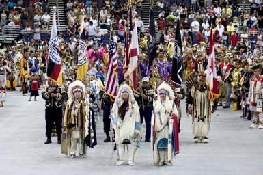 | Keywords: smithsonian institution smithsonianinstitution native american parade nativeamericanparade native american nativeamerican grand entry grandentry american indian americanindian regalia fancy dancers fancydancers grass dancers grassdancers jingle dress jingledress shawl dancers shawldancers opening ceremony openingceremony eagle staff eaglestaff parade 2005 head dress headdress flags crowd gathering pow wow powwow native drums culture indian ceremony cerem national museum of the american indian nationalmuseumoftheamericanindian outdoor Description: Powwows are large social gatherings of Native Americans who follow traditional dances started centuries ago by their ancestors, and which continually evolve to include contemporary aspects. These events of drum music, dancing, singing, artistry and food, are attended by Natives and non-Natives, all of whom join in the dancing and take advantage of the opportunity to see old friends and teach the traditional ways to a younger generation. During the National Powwow, the audience see dancers in full regalia compete in several dance categories, including Men and Women's Golden Age (ages 50 and older); Men's Fancy Dance, Grass and Traditional (Northern and Southern); Women's Jingle Dress, Fancy Shawl, and Traditional (Northern and Southern); Teens (13-17); Juniors (6-12) and Tiny Tots (ages 5 and younger). The drum groups are the heart of all powwows and provide the pulsating and thunderous beats that accompany a dancer's every movement. The powwow is led by three "host drums" that showcase three distinct styles of singing (Northern, Southern and contemporary) and represent the best examples of each style. The drum contest highlights groups of 10 to 12 members each, and they sing traditional family songs that are passed down orally from one generation to the next. The National Museum of the American Indian sponsored the National Powwow in 2002, 2005, and 2007 as a way of presenting to the public the diversity and social traditions of contemporary Native cultures. Creator/Photographer: Katherine Fogden Medium: Digital photograph Culture: American Indian Geography: USA Date: 2005 Repository: National Museum of the American Indian Accession number: 081305KFPWc120 Description: Powwows are large social gatherings of Native Americans who follow traditional dances started centuries ago by their ancestors, and which continually evolve to include contemporary aspects. These events of drum music, dancing, singing, artistry and food, are attended by Natives and non-Natives, all of whom join in the dancing and take advantage of the opportunity to see old friends and teach the traditional ways to a younger generation. During the National Powwow, the audience see dancers in full regalia compete in several dance categories, including Men and Women's Golden Age (ages 50 and older); Men's Fancy Dance, Grass and Traditional (Northern and Southern); Women's Jingle Dress, Fancy Shawl, and Traditional (Northern and Southern); Teens (13-17); Juniors (6-12) and Tiny Tots (ages 5 and younger). The drum groups are the heart of all powwows and provide the pulsating and thunderous beats that accompany a dancer's every movement. The powwow is led by three "host drums" that showcase three distinct styles of singing (Northern, Southern and contemporary) and represent the best examples of each style. The drum contest highlights groups of 10 to 12 members each, and they sing traditional family songs that are passed down orally from one generation to the next. The National Museum of the American Indian sponsored the National Powwow in 2002, 2005, and 2007 as a way of presenting to the public the diversity and social traditions of contemporary Native cultures. Creator/Photographer: Katherine Fogden Medium: Digital photograph Culture: American Indian Geography: USA Date: 2005 Repository: National Museum of the American Indian Accession number: 081305KFPWc120 |