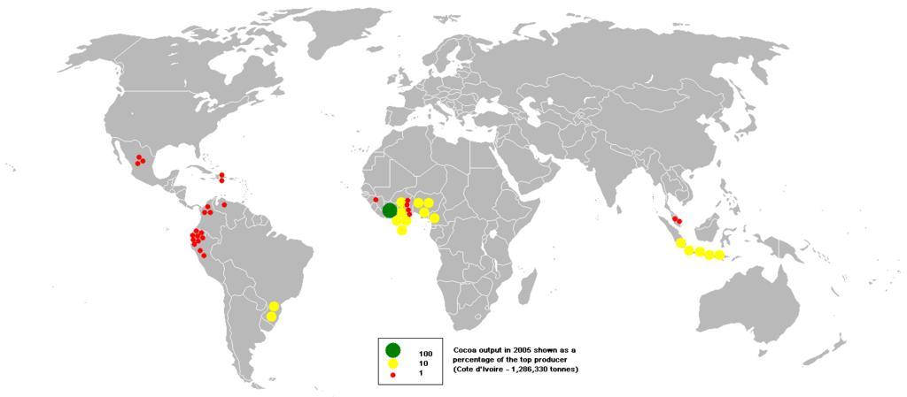 | Keywords: 2005cocoa bean.PNG bubble map shows the global distribution of cocoa bean output in 2005 as a percentage of the top producer Côte d'Ivoire - 1 286 330 tonnes Legend Cocoa output in 2005 shown as a percentage of the top producer Cote d'Ivoire - 1 286 330 tonnes Legend 009240 100 green fff500 10 yellow da251d 1 red Notes on the technical realization and data source of the map en This map is consistent with incomplete set of data too as long as the top producer is known It resolves the accessibility issues faced by colour-coded maps that may not be properly rendered in old computer screens Data was extracted on 18th June 2007 from http //faostat fao org/site/336/DesktopDefault aspx PageID 336 Transferred from http //en wikipedia org en wikipedia Original uploader was Anwar saadat <br />Original map source BlankMap-World png 2007-06-18 BlankMap-World png The map was made by User Vardion and adapted by User E Pluribus Anthony for Wikipedia derivative work Anwar saadat Vardion many others and Anwar saadat Kakaobohnenanbau 2005 PNG added data of cocoa bean output in 2005 as a percentage of the top producer Anwar saadat BlankMap-World png economic map Original upload log page en wikipedia 2005cocoa_bean PNG 2007-06-18 13 43 Anwar saadat 1425×625× 59340 bytes ' This image is a derivative work of the following images File BlankMap-World png licensed with PD-user many many more - see source file 2004-12-08T04 50 34 2004-12-08 04 50 34 Uhr 1 357×628 27 KB Vardion a blank map of the world Economic maps of the world Maps with Robinson projection English language maps of Earth Cocoa production Bubble maps |