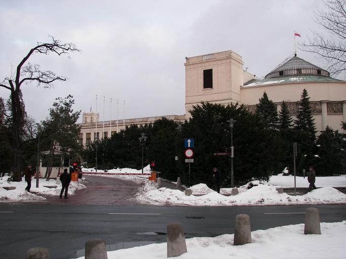Keywords: 20070131 sejm budynek glowny od matejki szlaban.jpg Sejm RP<br>Budynek główny widziany od ul Matejki szlaban Own 2006-01 Piotr VaGla Waglowski http //www vagla pl Sejm building complex