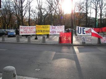| Keywords: 20071105 pikieta przed sejmem.jpg Dzień pierwszego posiedzenia Sejmu RP VI kadencji 5 listopada 2007 Own 2007-11-05 Piotr VaGla Waglowski http //www vagla pl Own work all rights released Public domain Sejm Demonstrations and protests in Poland in 2007 |
